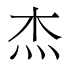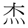 《唐韻》《集韻》《韻會》?渠列切,音桀。《玉篇》人名。梁四公子,其一䨲杰。《五代史》周世宗鎭澶淵,辟魏杰爲司法㕘軍。俗借作豪傑傑字。