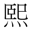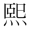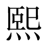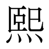 又人名。《左傳·襄八年》鄭公子熙。◎按釋文熙,許其反,徐音怡,二音俱可讀。《六書故》別作?。〇按字彙,《正字通》,熙字音義俱詳十畫熈註。考說文玉篇廣韻,諸書俱作熙,不作熈,則熈當爲俗字。今特將音義備載於此。