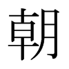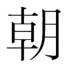 〔古文〕晁《唐韻》《廣韻》《集韻》《類篇》《韻會》?陟遙切,音昭。《說文》旦也。从倝舟聲。《爾雅·釋詁》朝,早也。《詩·鄘風》崇朝其雨。《傳》崇,終也。從旦至食時爲終朝。
