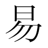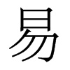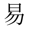 《唐韻》羊益切《集韻》《韻會》《正韻》夷益切,?音亦。《說文》蜥易,蝘蜓,守宮也。象形。祕書說:日月爲易,象隂陽也。《易·繫辭》《易》者,象也。《疏》《易》卦者,爲萬物之形象。《又》生生之謂易。《註》隂陽轉易,以成化生。《疏》隂陽變轉。《周禮·春官·大卜》掌三《易》之灋:一曰《連山》,二曰《歸藏》,三曰《周易》。《註》易者,揲蓍變易之數,可占者也。《孔穎達·周易正義》夫易者,變化之總名,改換之殊稱。《朱子·周易本義》《易》,書名也。其卦本伏羲所畫,有交易、變易之義,故謂之《易》。