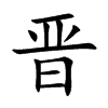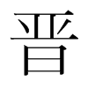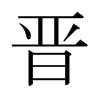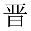 《正字通》俗㬜字。(晉)《唐韻》《集韻》《韻會》?卽刃切。《說文》作㬜,進也,日出萬物進也。《類篇》隸省作晉。《易·晉卦》晉,進也。《疏》以今釋古,古之晉字,卽以進長爲義。《又》明出地上晉。