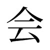 〔古文〕?㞧?㣛?《唐韻》《集韻》?黃外切,音繪。合也。《易·乾卦》亨者,嘉之會也。《疏》使物嘉美之會聚。《書·禹貢》灉沮會同。《疏》謂二水會合而同。
