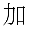 《唐韻》古牙切《集韻》《韻會》《正韻》居牙切,?音家。《說文》語相增加也。从力口。《徐曰》會意。《爾雅·釋詁》重也。《註》重?也。《玉篇》益也。《論語》又何加焉。