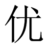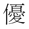 《篇海類編》于求切,音尤。五穀精,如人髮白也。(優)《唐韻》《集韻》《韻會》於求切《正韻》於尤切,?音憂。《爾雅·釋訓》優優,和也。《詩·商頌》敷政優優。言人君德政和樂也。