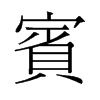 〔古文〕????《唐韻》必鄰切《集韻》《韻會》《正韻》?民切,?音濱。《說文》所敬也。《玉篇》客也。《易·觀卦》利用賓于王。《書·舜典》賓于四門。