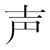 《字彙》同?。《正字通》俗聲字。(聲)〔古文〕殸《唐韻》《集韻》《韻會》書盈切《正韻》書征切,?聖平聲。《說文》音也。《書·舜典》詩言志,歌永言,聲依永,律和聲。《傳》聲謂五聲,宮商角徵羽也。《禮·月令》仲夏之月,止聲色。《註》聲謂樂也。