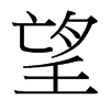 〔古文〕?《唐韻》《正韻》巫放切《集韻》《韻會》無放切,?音?。《說文》出亡在外,望其還也。从亡,朢省聲。《釋名》望,惘也,視遠惘惘也。《詩·邶風》瞻望弗及。