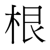 《唐韻》《集韻》《韻會》《正韻》?古痕切,音跟。《說文》木株也。《左傳·隱六年》農夫之去草,絕其本根,勿使能殖。