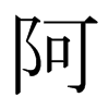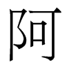 《唐韻》《集韻》《韻會》《正韻》?於何切,音娿。《爾雅·釋地》大陵曰阿。《玉篇》水岸也,邸也。《詩·小雅》菁菁者莪,在彼中阿。《傳》中阿,阿中也。