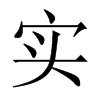 〔古文〕宲?《唐韻》《廣韻》神質切《集韻》《類篇》《韻會》食質切,?音失。《說文》實,富也。从宀从貫。貫,貨貝也。《廣韻》誠也,滿也。《增韻》充也,虛之對也。《易·本義》乾一而實,坤二而虛。《孟子》充實之謂美,充實而有光輝之謂大。《宋程頤曰》心有主則實,實則外患不能入。