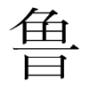 〔古文〕?《廣韻》《正韻》郞古切《集韻》《韻會》籠五切,?音虜。《說文》鈍詞也。《論語》參也魯。《何晏註》魯,鈍也。曾子性遲鈍。