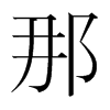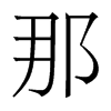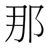 又去聲。《廣韻》奴箇切《集韻》《韻會》《正韻》乃箇切,?音哪。語助也。《後漢•韓康傳》公是韓伯休那。《杜甫詩》杖藜不睡誰能那。