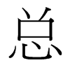 〔古文〕?《廣韻》《正韻》作孔切《集韻》《韻會》祖動切,?音摠。《說文》聚束也。《徐鉉曰》今俗作摠,非。《廣韻》合也,皆也。俗作惣。《書•伊訓》百官總巳。《左傳•僖七年》若總其罪人以臨之。《註》總,將領也。《前漢•揚雄傳》解扶桑之總轡。《註》總,結也。《屈原•離騷》紛總總其離合兮。《註》總總,猶繜繜,聚也。