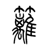 《集韻》鄰知切,音離。笊篱,竹器。(籬)《廣韻》呂支切《集韻》《韻會》鄰知切《正韻》鄰溪切,?音離。籓籬也。《釋名》籬,離也。以柴竹作之。疏離,離也。《晉書·庾袞傳》與弟子樹籬,跪而授條,曰:幽顯易操,非君子意。