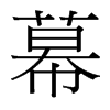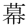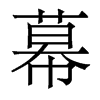 《唐韻》慕各切《集韻》《韻會》《正韻》末各切,?音莫。《說文》帷在上曰幕。《廣雅》帳也。《釋名》幕,絡也,在表之稱也。《周禮·天官·幕人》掌帷幕幄帟綬之事。《左傳·成十六年》楚子登巢車,以望晉軍,伯州犂侍于王後,王曰:張幕矣。曰:虔卜于先君也,徹幕矣。曰:將發命也。