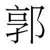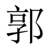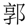 〔古文〕?《唐韻》《正韻》古博切《集韻》《韻會》光鑊切,?音椁。《廣韻》內城外郭。《釋名》郭,廓也。廓落在城外也。《白虎通》所以必立城郭者,示有固守也。
