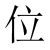 《廣韻》于愧切《集韻》于累切《韻會》喩累切《正韻》于位切,?音壝。《說文》列中庭之左右曰位。《廣韻》正也。《易·繫辭》聖人之大寶曰位。《周禮·天官》惟王建國,辨方正位。