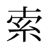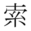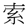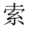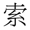 《廣韻》蘇各切《集韻》《韻會》昔各切,?音?。《說文》作?,草有莖葉可作繩索。从?糸。《韻會》隷作索。《小爾雅》大者謂之索,小者謂之繩。《急就篇註》索,總謂切撚之令緊者也。《書·五子之歌》若朽索之馭六馬。《詩·豳風》宵爾索綯。