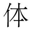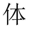 又麤貌。與笨同。《通雅》輀車之夫曰体夫。唐懿宗咸通十二年葬,同昌公主賜酒餠餤四十橐駝,以飤体夫。《註》体,蒲本反。体夫,轝柩之夫。俗書四體之體,省作體,誤。(體)〔古文〕?《唐韻》《正韻》他禮切《集韻》《韻會》土禮切,?涕上聲。《說文》總十二屬也。《釋名》體,第也。骨肉毛血表裏大小相次第也。《廣韻》四支也。《禮·中庸》動乎四體。