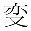 〔古文〕???《唐韻》祕戀切《廣韻》彼眷切。《集韻》《韻會》彼卷切,?鞭去聲。《說文》更也。《小爾雅》易也。《廣韻》化也,通也。《增韻》轉也。《正韻》攺也。《易·乾卦》乾道變化。《易解》自有而無謂之變,自無而有謂之化。《禮·王制》一成而不可變。《註》更也。《周禮·夏官·司爟》四時變國火,以救時疾。《註》變,猶易也。《前漢·循吏傳》漢家承敝通變。