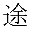 又通作涂、塗。《周禮·冬官考工記·匠人》經涂九軌。《論語》遇諸塗。