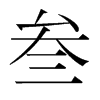 又本作參。《博雅》參,三也。《周禮·冬官考工記》參分其股圍。《前漢·?法志》秦造參夷之誅。?與三同。
