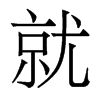 《廣韻》《集韻》《韻會》《正韻》?疾僦切,音鷲。《說文》就,高也。从京,从尤。《徐曰》尤,異也。尤高人所就之處,語曰:就之如日。會意。《廣韻》成也,迎也。《詩·邶風》就其深矣,方之舟之。《周頌》日就月將,學有緝熙于光明。