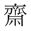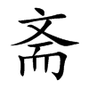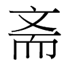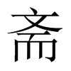 《篇海》同齋。(齋)《廣韻》側皆切《集韻》《韻會》《正韻》莊皆切,?債平聲。《正韻》潔也,莊也,恭也。《廣雅》齋,敬也。《禮·祭統》齋之爲言齊也。《易·繫辭》聖人以此齋戒。《註》洗心曰齋。