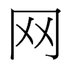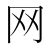 〔古文〕????《廣韻》文兩切《集韻》《韻會》《正韻》文紡切,?音網。《說文》庖犧所結繩以漁。从冂,下象網交文。《註》今經典變隷作罒。《玉篇》羅罟總名。亦作?、罔、?、?。《廣韻》與網同。《篇海》网字有三譌:本作网而譌作?,亦作冈而又譌作?,又亦作?而譌作罒。罒乃橫目,惟睪眔睘等字從之,其他但屬羅網義者,?係?字下橫畫,不連兩旁。(網)《廣韻》文兩切《集韻》《韻會》《正韻》文紡切,?音罔。《說文》本作网。或作?,隷省作㒺。今文从糸作綱。《易·繫辭》作結繩而爲㒺罟,以佃以漁。《朱子·本義》㒺,與綱同。《書·盤庚》若綱在綱。《詩·邶風》魚綱之設。