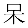 又莫厚切,音母。古文某字。今俗以爲癡獃字。誤也。《類篇》同槑省。或作某,通作梅。《本草》梅,杏類,倒杏爲呆。俗以爲癡獃之獃,誤。《說文》从?不从口。?,本字。