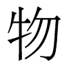 《唐韻》文弗切《集韻》《韻會》《正韻》文拂切,?音勿。《說文》萬物也。牛爲大物。天地之數,起於牽牛,故从牛。勿聲。《玉篇》凡生天地之閒,皆謂物也。《易·乾卦》品物流形。