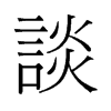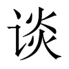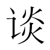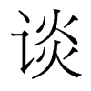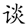 《唐韻》《集韻》《韻會》徒甘切《正韻》徒藍切,?音郯。《說文》語也。《徐曰》談者,和懌而悅言之。《廣韻》談話,言論也。《公羊傳·閔二年》魯人至今以爲美談。《禮·儒行》言談者,仁之文也。《史記·滑稽傳》談言微中。《晉書·阮修傳》王衍當時談宗。