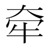 〔古文〕摼?《唐韻》苦堅切《集韻》《韻會》輕煙切,?音岍。《說文》引前也。从牛,象引牛之縻也。《易·夬卦》牽羊悔亡。《書·酒誥》肇牽車牛。《禮·曲禮》效馬效羊者,右牽之。效犬者,左牽之。