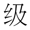 又《玉篇》階級也。《廣韻》等級。俗作?。《禮·曲禮》拾級聚足。《註》級,等也。