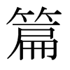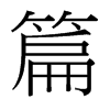 《廣韻》芳連切《集韻》《韻會》紕延切《正韻》紕連切,?音偏。《正韻》?成章也。《前漢·武帝紀》元光元年,詔賢良咸以書對,著之於篇。《詩·關雎疏》篇,徧也。出情鋪事,明而徧也。