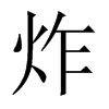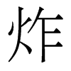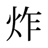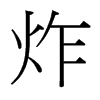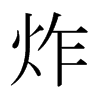 说明:“炸”字有几笔几画,是根据康熙字典及五格姓名学而来,并不一定与新华字典的笔划数相同。“炸”字五行属什么、“炸”字的取名吉凶,则是根据周易万物类象推断,仅供起名参考。