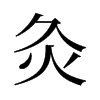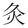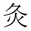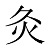 灸【巳集中】【火部】 康熙筆画:7画,部外筆画:3画