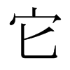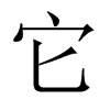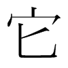《玉篇》古文佗字。佗,蛇也。《說文》虫也。本作它,从虫而長。上古艸居,慮它,故相問無它乎。