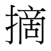 《唐韻》《集韻》《韻會》《正韻》?他歷切,音剔。《說文》拓果樹實也。一曰指近之也。《傅毅·舞賦》摘齊行列。《註》指摘行列。使整齊也。