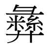 〔古文〕???《唐韻》以脂切《集韻》《韻會》《正韻》延知切,?音姨。《說文》宗廟常器也。从糸。糸,綦也。升,持米器,中實也。彑聲。《左傳·襄十九年》取其所得,以作彝器。《註》謂鍾鼎爲宗廟之常器。