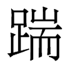 《廣韻》市兗切《集韻》豎兗切,?音剬。足踹也。《玉篇》足跟也。《淮南子·人閒訓》踹足而怒。《註》踹足,蹀足也。