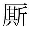 又《西域傳》尚書厮留甚衆。《註》厮留,言其前後離厮,不相還及也。(廝)《廣韻》息移切《集韻》《韻會》相支切《正韻》相咨切,?音斯。《玉篇》使也,賤也。《唐韻》養也。《集韻》析薪養馬者。《公羊傳·宣十二年》厮役扈養。《註》艾草爲防者曰厮。《揚子·方言》官婢,女厮,謂之娠。《註》女廝者,婦人給使,亦謂之娠。