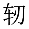 《廣韻》《集韻》《韻會》《正韻》?而振切,音刃。《說文》礙車也。《徐曰》止輪之轉,其物名軔。