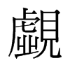 覰【酉集上】【見部】 康熙筆画:18画,部外筆画:11画