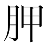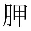 《廣韻》《集韻》《韻會》?古狎切,音甲。《廣韻》背胛。《集韻》一曰闔也。與胷脅相會闔。《正字通》俗謂肩甲。《後漢·張宗傳》中矛貫胛。《註》背上兩膊閒也。