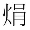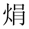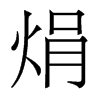 焆【巳集中】【火部】 康熙筆画:11画,部外筆画:7画