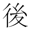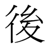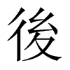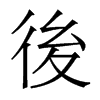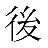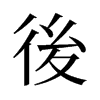 〔古文〕??《唐韻》《正韻》胡口切《集韻》《韻會》很口切,?音厚。《說文》遲也。从彳幺夂者,後也。《徐鍇曰》幺,猶?躓之也。《玉篇》前後也。《廣韻》先後也。《詩·小雅》不自我先,不自我後。