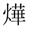 㷸【巳集中】【火部】 康熙筆画:16画,部外筆画:12画