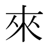 〔古文〕徠《廣韻》落哀切《集韻》《韻會》《正韻》郞才切,?賴平聲。至也,還也,及也。《禮·曲禮》禮尚往來。往而不來,非禮也。來而不往,亦非禮也。