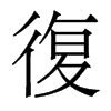 〔古文〕??《唐韻》《集韻》《韻會》《正韻》?房六切,音伏。《說文》往來也。《廣韻》返也。《書·舜典》如五器卒乃復。《傳》復,還也。《詩·小雅》言歸思復。